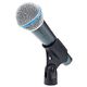 The Beta 58A is a dynamic, high-output vocals microphone designed for professional audio amplification and use in the recording studio. The supercardioid polar pattern extends over the entire transmission range and guarantees high, feedback resistant amplifications, maximum isolation from other sound sources and a minimum of off-axis sound. The contoured frequency response is ideal for close-up vocals.